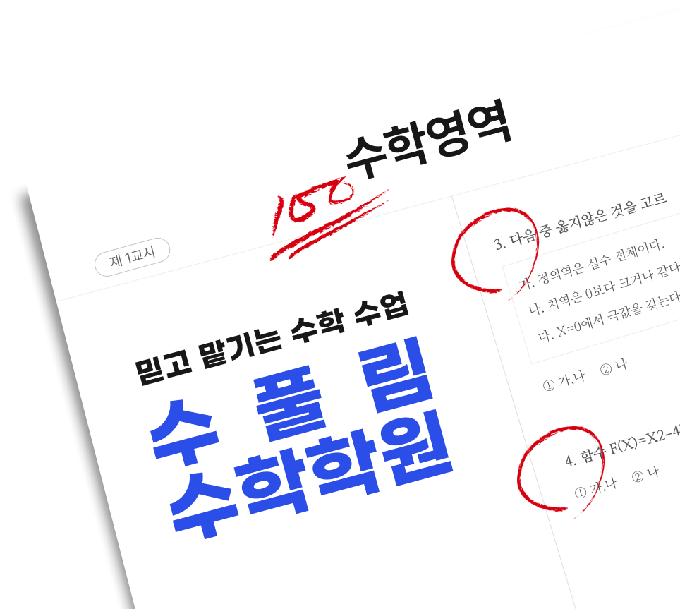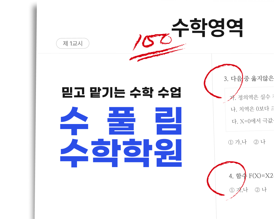 오늘보다 더 나아지는 내일을 만들어가는, 믿고 맡길 수 있는 수학 전문 학원 수풀림입니다.